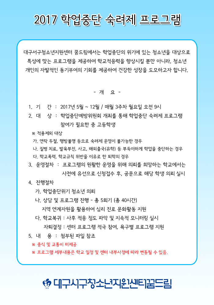 2017 학업중단 숙려제 프로그램 안내