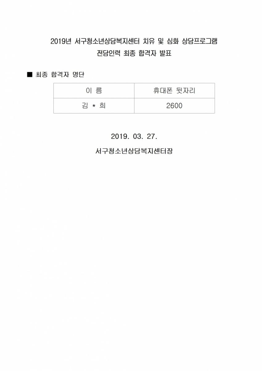 [발표] 서구청소년상담복지센터 치유 및 심화 상담프로그램 전담인력 최종합격자 발표
